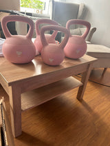 "Thanks to these kettlebells, I don't worry about my kids wanting to try exercising with me; their little hands and feet are safe 🤍🔥"